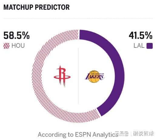 湖人在圣誕大戰中,也是被外界看衰,尤其ESPN預測勝率上剛過四成。要知道湖人在自己主場作戰,對面火箭這段時間,狀態也不是特別好,已經跌至西部第六的位置,結果湖人卻只有41.5%勝率,肯定是有點低了。