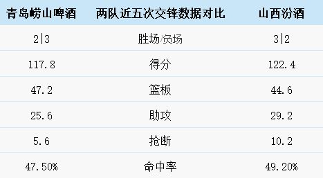 青島嶗山啤酒與山西汾酒歷史上一共交手40次,青島嶗山啤酒15勝 25負。