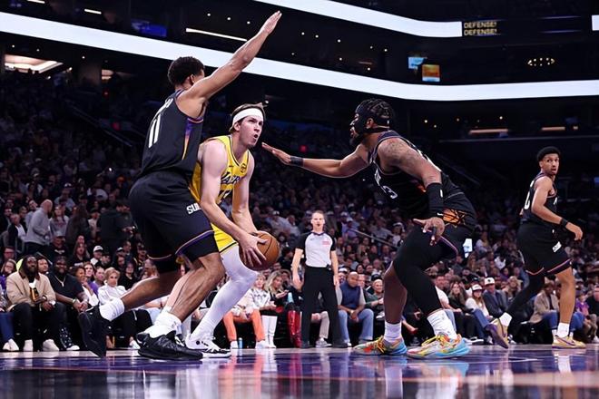 本場比賽中,湖人的后場大將奧斯汀-里夫斯(Austin Reaves)終于完成了復出,但是他在復出后的表現并不理想。里夫斯全場出場21分43秒,投籃11中6,三分線外5中1,罰球5中4,得到了17分2籃板2助攻的數據,還有3次失誤和4次犯規,正負值為-17。里夫斯看起來得到了不少分數,但是他在外線投籃方面的手感并不理想,他在組織和串聯方面的能力也沒有開始發揮出來,他在進攻端并沒有起到特別突出的效果。最關鍵的是,里夫斯在防守端的表現也是令人非常失望的,甚至太陽的雙向合同替補后場球員賈馬里-布耶(Jamaree Bouyea)都可以連續單打里夫斯成功。里夫斯的個人能力顯然不至于如此,但是至少本場比賽他并沒有起到這樣的作用。