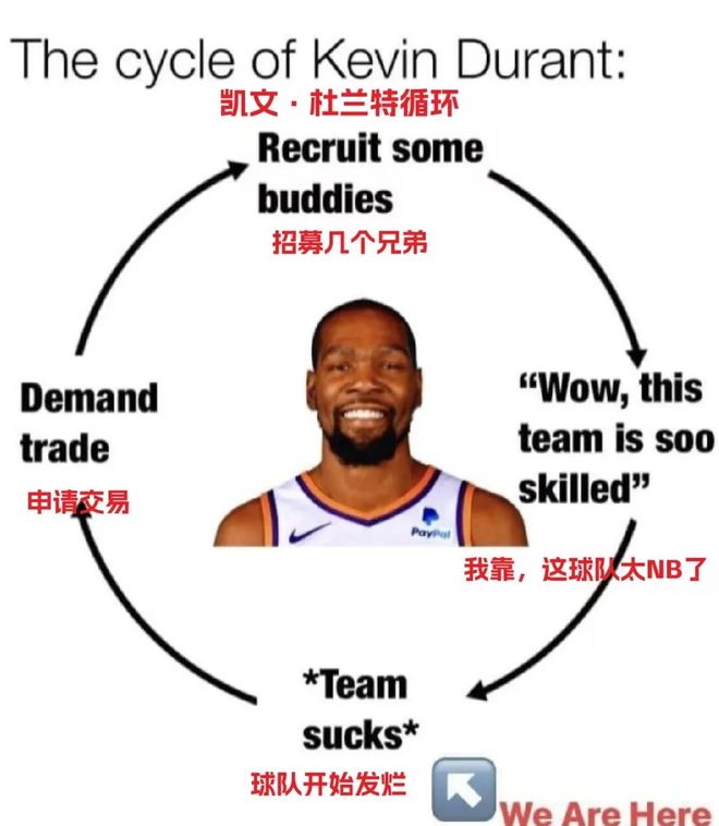 對(duì)此,有人制作了一張圖用于調(diào)侃杜蘭特,如下: