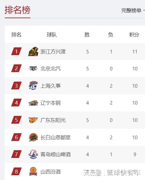 四冠王遼寧隊,他們在這一輪比賽客場挑戰廣廈,球隊最終以32分的分差慘敗給對手,連勝紀錄也被終結了。這一場比賽過后,遼寧隊的戰績變成4勝2負,遭遇到賽季第2敗。不過,由于多賽一場的緣故,遼寧隊在排名上稍微占優,他們暫居積分榜第4名。而作為遼寧隊的老對手,廣東隊雖然本賽季保持不敗金身,已經豪取5連勝,可他們最終還是只能屈居人后,以5勝0負的戰績,排在積分榜第5名。