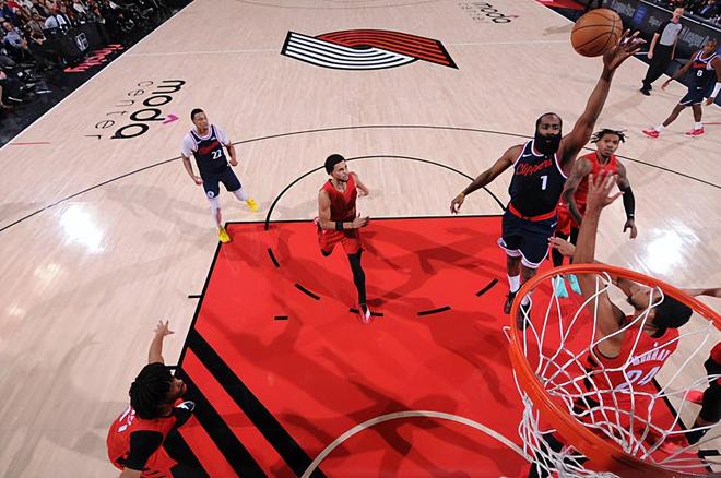 本場比賽中,快船的后場核心詹姆斯-哈登(James Harden)打出了一場現象級的比賽。哈登全場出場38分56秒,投籃17中10,三分線外9中3,罰球12中11,得到了全場最高分34分外加2籃板6助攻的數據,還有3次失誤和1次犯規,正負值為+12。哈登在進攻端勢不可擋,他展現出了全面的得分能力,他通過各種方式拿下了大量的分數,他的突破犀利,終結能力出色,而且他在外線投籃方面的威脅度也非常高。哈登在傳球和組織方面也能夠起到一定的作用,他在防守端也沒有出現什么太大的問題。最關鍵的是,哈登在每一節比賽中基本上都能夠保持較高的水準,基本上都能夠保持穩定的得分貢獻,這也是球隊能夠穩住局面并且最終比較順利地戰勝對手的重要因素。哈登在本場比賽中也確實是起到了后場核心應有的作用。