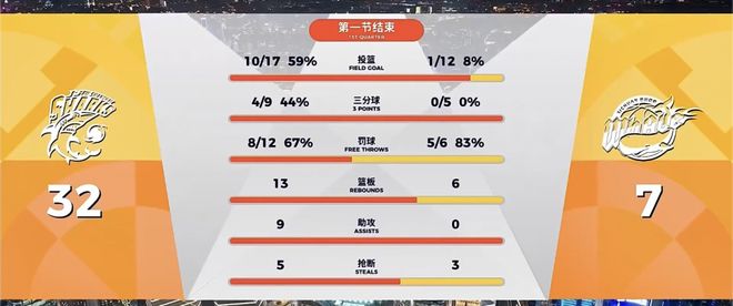四川隊新賽季6連敗,場均得分只有67.2分,排在CBA倒數第一;本場比賽他們還是毫無爭勝欲望,6分鐘打完,全隊8投只有1中,上海男籃得到29分的時候,四川男籃僅僅拿到可憐的2分。首節戰罷,大鯊魚32比7,領先對手25分。