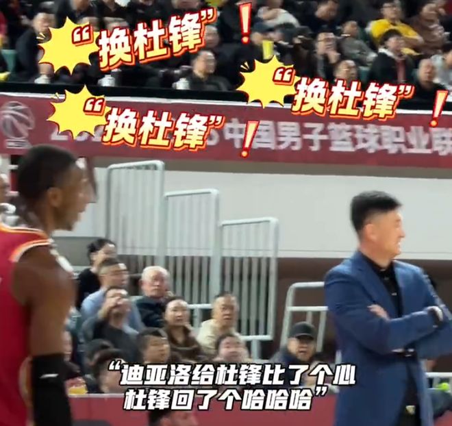 這場比賽杜鋒指導來到山西主場,球迷們也沒有放過他,多次高呼換杜鋒、換杜鋒。迪亞洛還朝著杜鋒比了一個心,杜鋒回應了迪亞洛一個哈哈哈大笑。