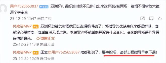 最近,名記付政浩對國家隊和國手的表現作了評論,他表示,看了男籃世預賽的蹩腳表現,試問誰不深感壓力呢?但籃協的緊迫感和責任感又體現在哪呢?比賽都結束了一個月了,說好的深刻總結又總結到哪了?他在與球迷的互動中更是痛斥了郭士強,“讓郭士強指導解釋一下他的選人原則就行,各種夾帶私貨”,“郭導已經黔驢技窮,早點下課,回到CBA找個中下游球隊好好抓訓練抓防守繼續當名帥吧。別再禍禍國家隊了,國家隊連續輸給韓國,這是在砸所有中國籃球人的飯碗,一舉把中國籃球的商業價值全干崩了。放過中國籃球吧”,付政浩最后激動地對郭粉說:啥都別說了,要點臉吧,請郭士強指導早點下課!