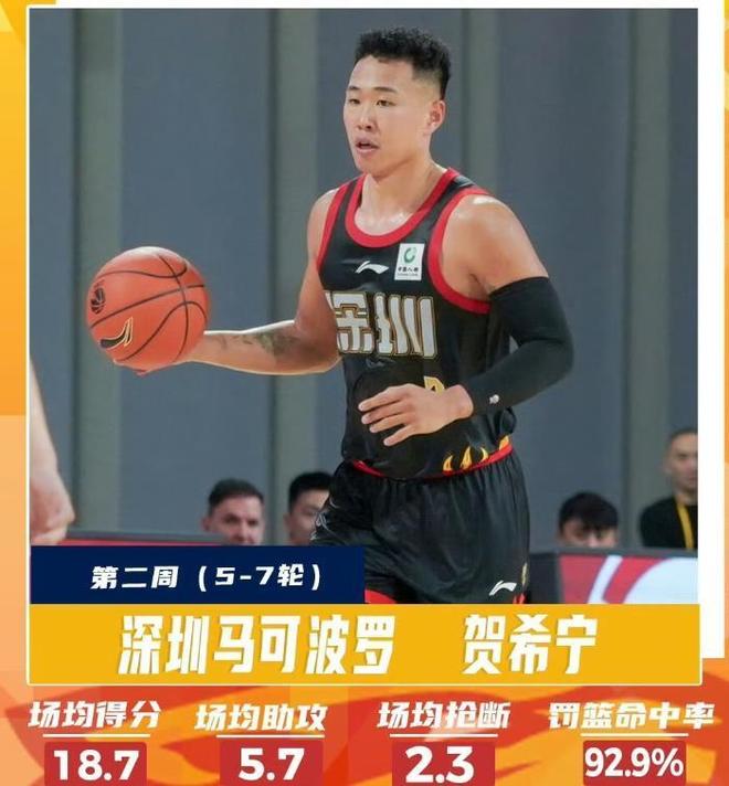 本賽季深圳隊的賀希寧和王浩然兩名球員的表現都非常亮眼,前8輪比賽賀希寧場均可以拿到20.3分4.9個籃板和4.1次助攻的數據。今天上午CBA剛剛公布的第二周周最佳球員,賀希寧當選,上周他場均可以拿到18.7分5.7個籃板2.3次助攻,罰球命中率高達92.9%。賀希寧本賽季的數據表現值得一個國家隊的名額,賽后賀希寧說“每個人都在經歷不同的事情,我的努力沒有辦法讓很多人知道,只能說在這個夏天付出了很多努力,做好了面對新賽季的準備。”