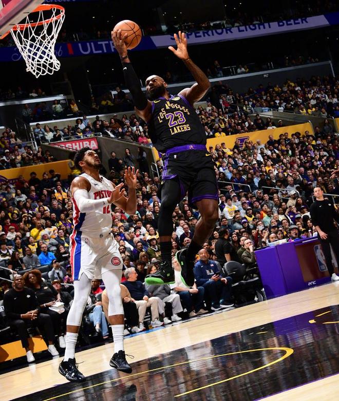 休息歸來(lái)雙方繼續(xù)拉鋸,活塞依靠上半場(chǎng)取得的優(yōu)勢(shì)一直維持著5分左右的領(lǐng)先,湖人下半場(chǎng)一直不慍不火制造不了危機(jī),第四節(jié)8分鐘里僅得8分直接崩盤(pán),活塞抓住機(jī)會(huì)送上一波26-8的攻勢(shì)確立起20分以上的領(lǐng)先殺死比賽懸念。最終湖人主場(chǎng)106-128大敗活塞,詹姆斯賽后第一時(shí)間走進(jìn)球員通道。
