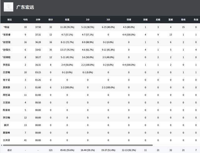 至于說(shuō)個(gè)人呢表現(xiàn),楊溢真的是不辱使命,此役首發(fā)打了38分鐘,28投11中,三分球15投6中,5罰4中,獨(dú)砍32分4籃板15助攻,可謂贏球的第一大功臣。而趙保樂(lè)更是高效地17投13中,轟下35分。再看山東隊(duì),王證打了22分鐘,14投7中,只拿到22分。