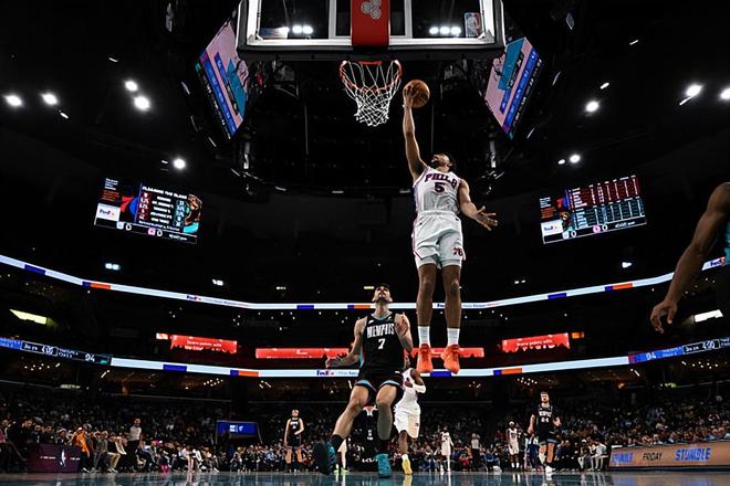 本場比賽中,76人的替補后場大將昆汀-格萊姆斯(Quentin Grimes)的表現還是非常出色的。格萊姆斯全場出場37分31秒,投籃9中4,三分線外6中2,罰球2中1,得到了11分3籃板3助攻3搶斷的數據,沒有失誤和犯規,正負值更是達到了全場最高的+18。格萊姆斯在進攻端受制于球權沒有辦法為球隊提供更多的支持,但是他也還是得到了一些分數的,而且他也能夠在一定程度上起到分享球方面的作用。最關鍵的是,格萊姆斯在防守端的表現確實是相當突出,他確實是能夠在防守端起到關鍵的作用。格萊姆斯防守賈-莫蘭特(Ja Morant)的效果相當不錯,格萊姆斯一下去,莫蘭特就能隨便亂殺了。以莫蘭特的狀態,如果沒有格萊姆斯,他應該是能打出50+的數據的。+18的正負值也能夠說明一點,格萊姆斯在場上對于比賽的影響力非常驚人。
