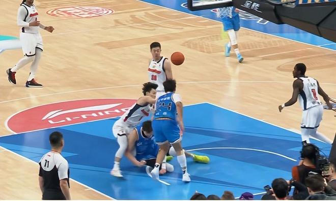 當時的情況是這樣,周琦回防途中被絆倒,他卻意外倒地,而且還是摔倒在徐杰的腿上。當然周琦肯定不是故意的,畢竟他只是意外摔倒,徐杰的運氣太差了。