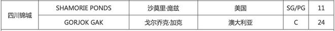 四川新援沙莫里-龐茲曾短暫效力NBA,2019年落選后簽約多倫多猛龍隊。上賽季他效力蒙古額爾登特礦工隊,場均22.9分、6.1籃板、?4.3助助攻、3.3次搶斷。