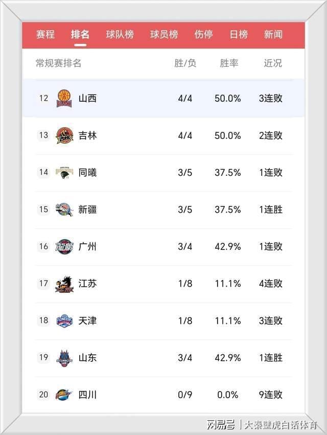 ④、全華班比賽的四川男籃又輸了,9連敗直接未嘗一勝,繼續處于墊底位置。