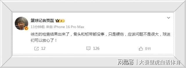 很多球迷關心徐杰的傷情,根據最新消息顯示。