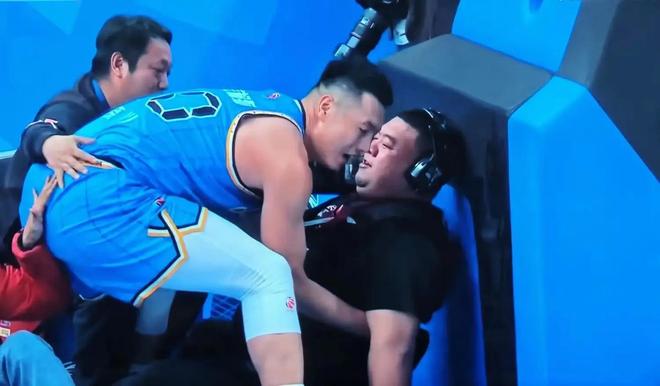 在與廣東的比賽中,翟曉川在一次進攻時沖出場地,與場邊的攝像師相撞,翟曉川想將攝像師扶起來,但試了兩次均以失敗告終。據了解,該攝像師曾是一名專業的摔跤運動員,體重超過了300斤。