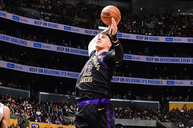 首先表態的,是中鋒海斯。一場比賽,襠部被對手肘擊兩次。不過這并未影響他的狀態,反而激發了他的斗志,這場比賽打得非常積極且高效。但要是說場上能量,今天的拉拉維亞確實是頂級,半場就9投7中獨得全隊最高的18分還有5個籃板。而他的發揮,也幫助湖人隊在第二節確立了兩位數的領先優勢。但好景不長,灰熊隊靠著整體更年輕的陣容,不斷追趕比分。所以總的來說,這場比賽湖人隊在進攻端并沒有占到太多的便宜。半場結束時,湖人隊只有著6分的領先優勢。而且下半場,湖人隊還沒反應過來的時候,就被灰熊隊打出一波流,直接追平了比分。