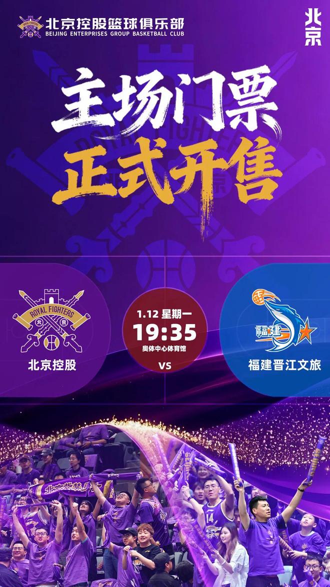 【票務公告】北控男籃對陣福建男籃主場門票將于1月5日12:18開售