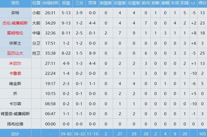 雷霆三分球32中10,命中率只有約31%,投籃向來是他們的最大軟肋,數(shù)據(jù)如下:
