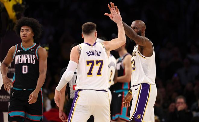 在末節決戰中,老詹得到11分3籃板3助攻,東契奇則是入賬10分3籃板2助攻,灰熊如何遮攔得住?這兩位歷史級別的playmaker型球員,單獨拿出一位來,就夠中游球隊的防守喝一壺,兩人雙劍合璧,那防守難度更是呈指數級上升。之前球隊狀態不佳時,詹姆斯和東契奇的關系也深陷輿論漩渦,上場比賽,場邊攝像機拍到老詹大笑并親昵摟著盧卡腦袋的鏡頭,也是讓這樣的謠言不攻自破。對于湖人來說,能同時擁有盧卡和老詹是幸運,又何必自尋煩惱呢?