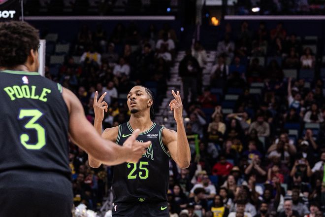 因為墨菲上半場就砍下了14分,第三節更是12投8中獨得20分!之前就傳出過湖人有意墨菲的流言,可湖人讓其打出如此夸張的表現,不是逼著鵜鶘隊加價嗎?你說你驗貨,哪有這樣驗貨的?另一個鵜鶘隊球員赫伯特·瓊斯就做得不錯,全場只得到3分,算是向湖人隊遞了投名狀。因為墨菲的爆發,所以上半場湖人隊就陷入了被動,包括第三節。但湖人隊并不打算像火箭隊那樣送溫暖,壓力之下,詹姆斯拿出了不屬于他這個年齡的狀態。初入聯盟的時候就是飛天遁地的暴扣,現在41歲了還這么打,實在是夸張。就這樣的表現,若真的落選全明星首發,確實有點遺憾。