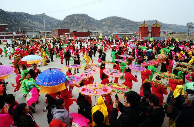 其中,臨縣傘頭秧歌是極具代表性的存在,作為國家級非物質文化遺產,它在當地還有“鬧會子”“鬧紅火”的俗稱,集合了音樂、舞蹈、武術、戲曲、民歌等多種元素。