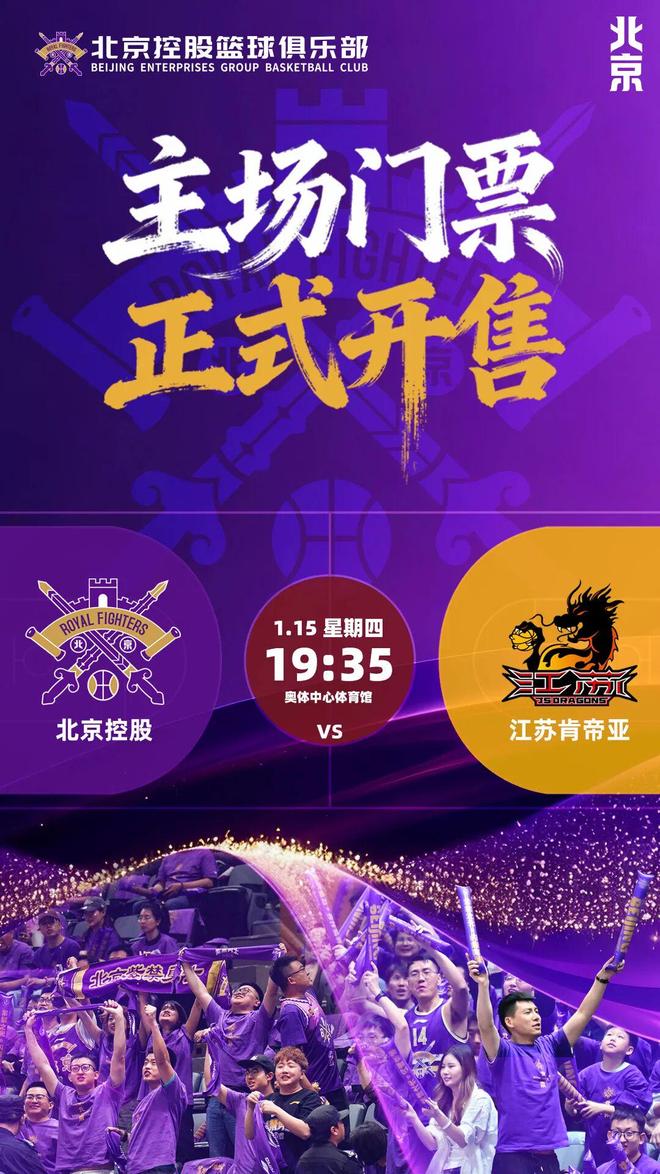【票務公告】北控男籃對陣江蘇男籃主場門票將于1月8日12:18開售