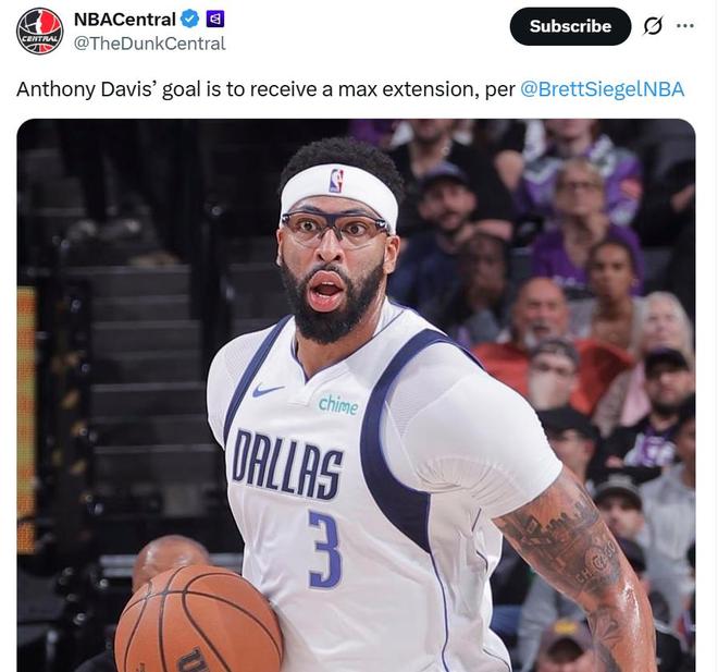 NBA記者Brett Siegel也在最新的播客節目中曝出,濃眉哥團隊今夏的目標是一份價值4年2.75億美元的頂薪續約合同。
