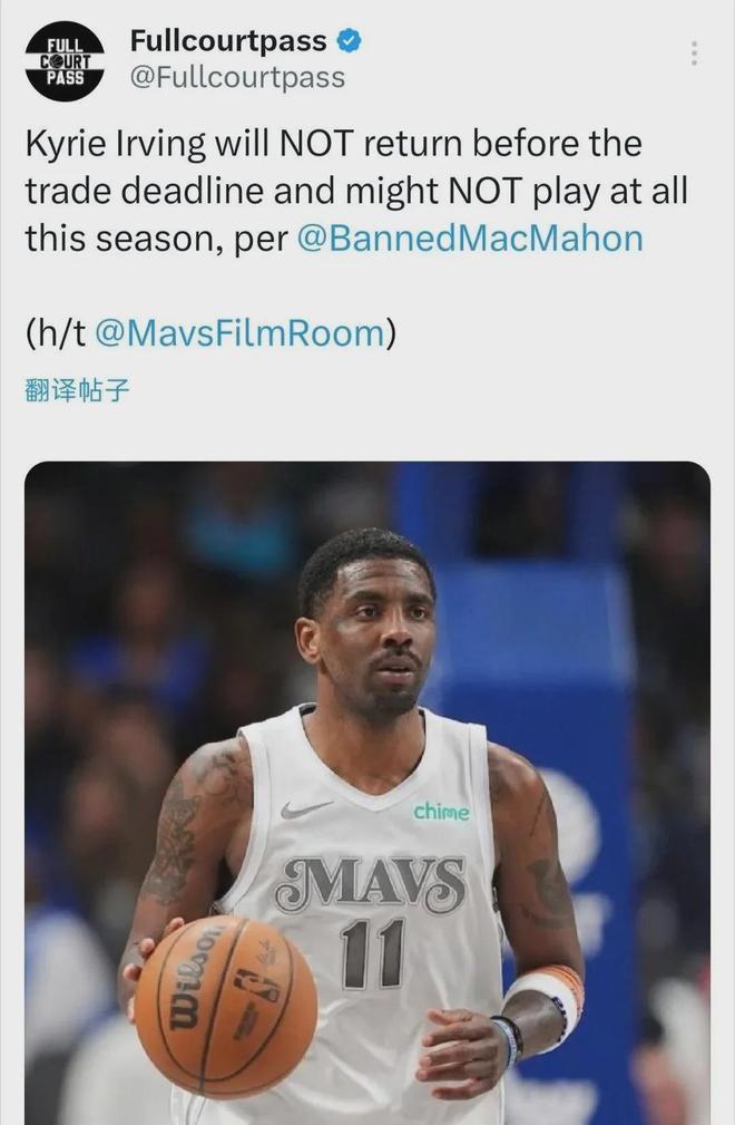 順帶提一嘴歐文,預(yù)計(jì)不會(huì)在今年交易截止日(2月6日)前復(fù)出,也有可能賽季報(bào)銷,他于去年三月初比賽中遭遇左膝前十字韌帶撕裂,已傷停10個(gè)月。