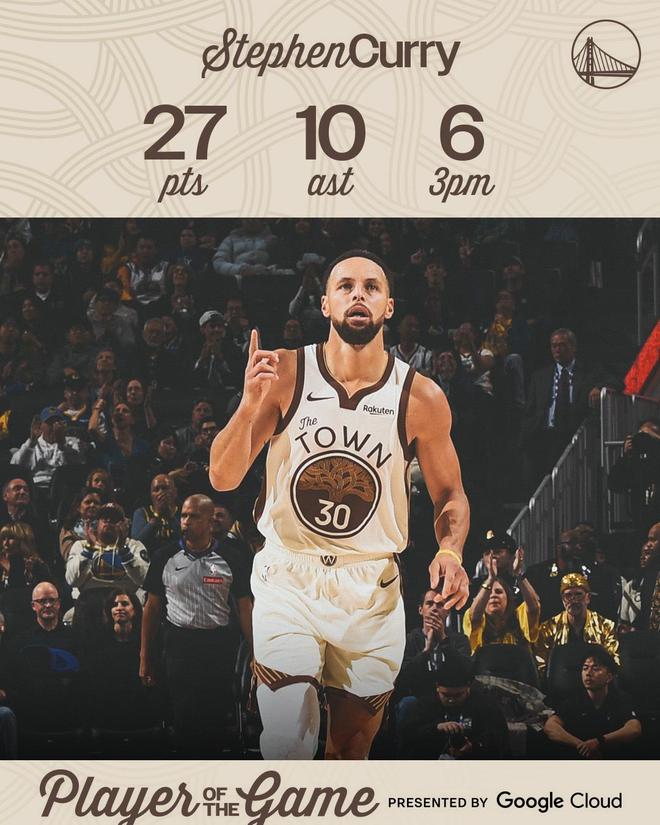 勇士隊超級巨星斯蒂芬庫里,在此役迎來暴走。庫里出戰32分鐘,21投10中,三分12中6,罰球1中1,狂轟27分10助攻1搶斷2蓋帽的兩雙數據,正負值+14。庫里以接近50%的命中率轟下了全場的最高分,還投進了此戰最多的6記三分球。庫里首節砍下了11分,上半場獨得18分。下半場,庫里再得9分。進攻端,庫里實現了火力全開。