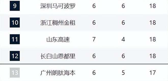 深圳、浙江、山東、吉林和廣州排在9-13。不過山東是少打一場比賽,他們為7勝,其他都是6勝。目前山東已經五連勝了,球隊攻守兼備,甚至這輪絕殺北京,完成了覺醒。浙江換帥之后的戰績也非常好,現在已經兩連勝了。深圳這輪只是惜敗廣東,他們本賽季的競爭力也非常強。吉林目前兩連勝,他們在主場的勝率非常高。廣州這輪慘敗浙江,最近起伏還是比較大。