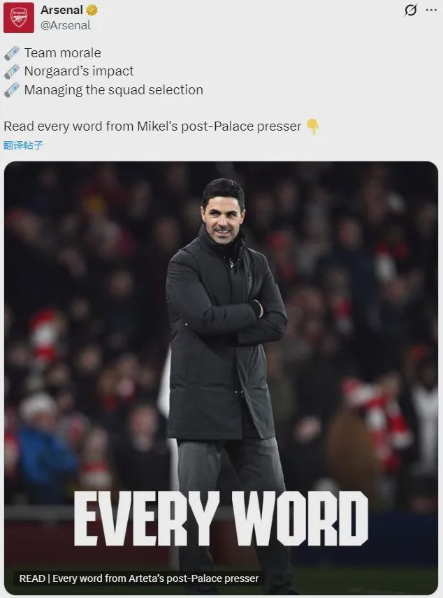 阿爾特塔在上場(chǎng)的賽后新聞發(fā)布會(huì)中談到了一些內(nèi)容,我們只看沒(méi)有時(shí)效性的消息。