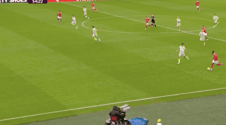 比賽第48分鐘,曼城前場進攻,格瓦迪奧爾直接傳球到肋部,謝爾基拿球后從容送出助攻,賴因徳斯一腳觸球直接打門球進,1-0,曼城領先!