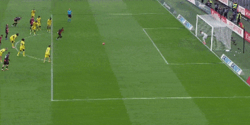 第33分鐘,即將加盟米蘭的德國(guó)中鋒菲爾克魯格出現(xiàn)在看臺(tái),感受圣西羅主場(chǎng)的氛圍。