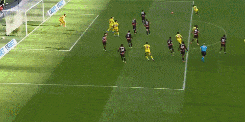 第26分鐘,拉比奧弧線球傳中,恩昆庫(kù)中路搶點(diǎn)差之毫厘。