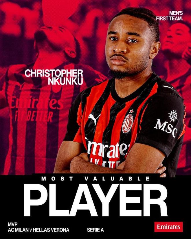 在昨天晚上進行的意甲第17輪比賽中,米蘭3-0擊敗維羅納,賽后,恩昆庫被評為本場比賽隊內最佳球員。
