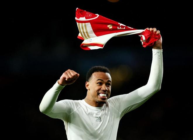 第 48 分鐘,薩卡開出角球,加布里埃爾高高躍起頭球破門,為球隊(duì)打破僵局。這粒進(jìn)球不僅是他個(gè)人狀態(tài)回歸的最好證明,更讓阿森納徹底掌控了比賽節(jié)奏。