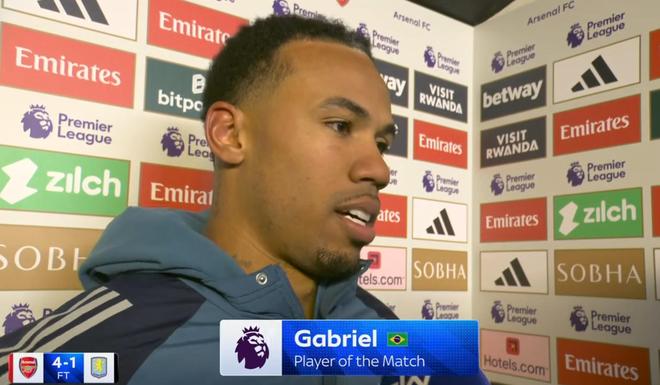 在主場4-1戰勝維拉的賽后,本場比賽打入一球的阿森納后衛加布里埃爾接受了天空體育的采訪。