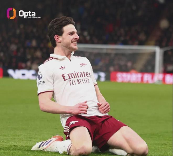 Opta統計,本場比賽是賴斯職業生涯第一次在英超完成梅開二度,在他的第296場英超比賽解鎖了這一成就!