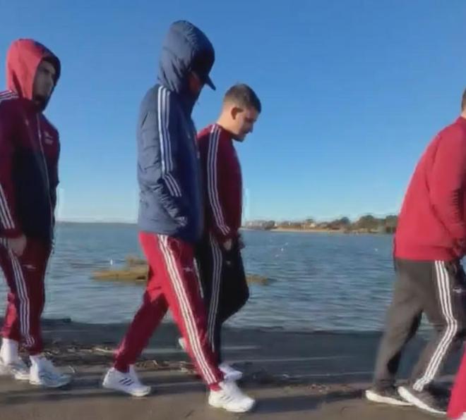 賴斯和阿森納首席理療師墨菲跟隨全隊進行了賽前散步。