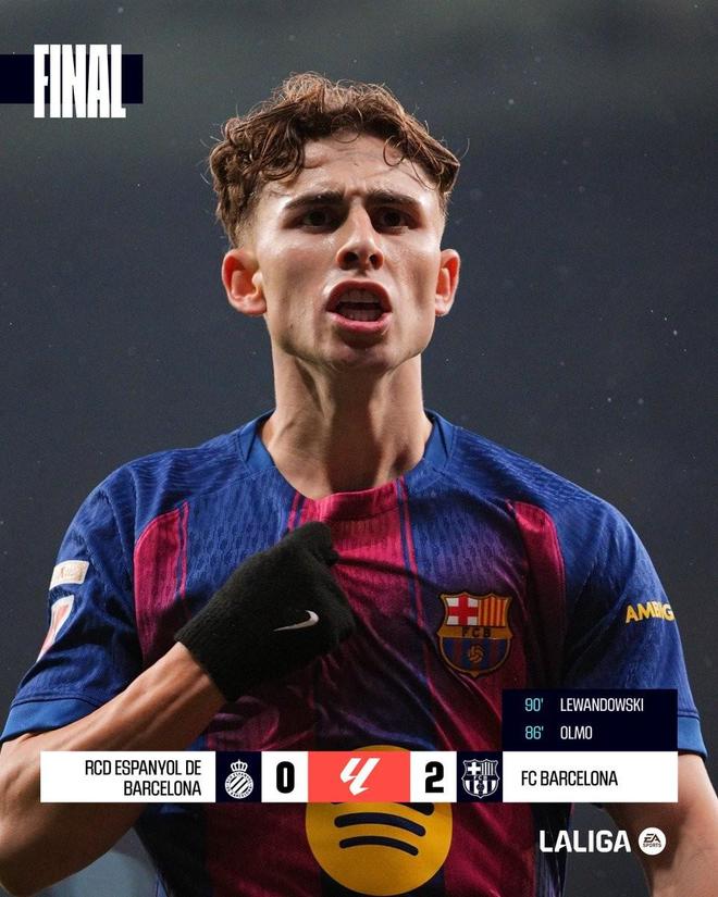此役客場對陣西班牙人,巴薩憑借替補登場的奧爾莫和萊萬各入一球,以2-0的比分擊敗對手。