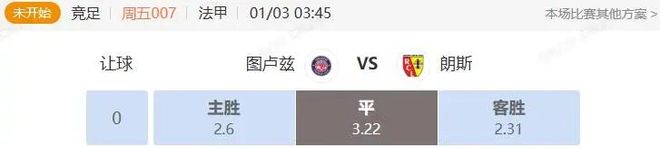 目前市場給到平手,朗斯作為領頭羊沒有任何數據優勢,兩隊防守都極具韌性,很可能交出一場平局各取一分。