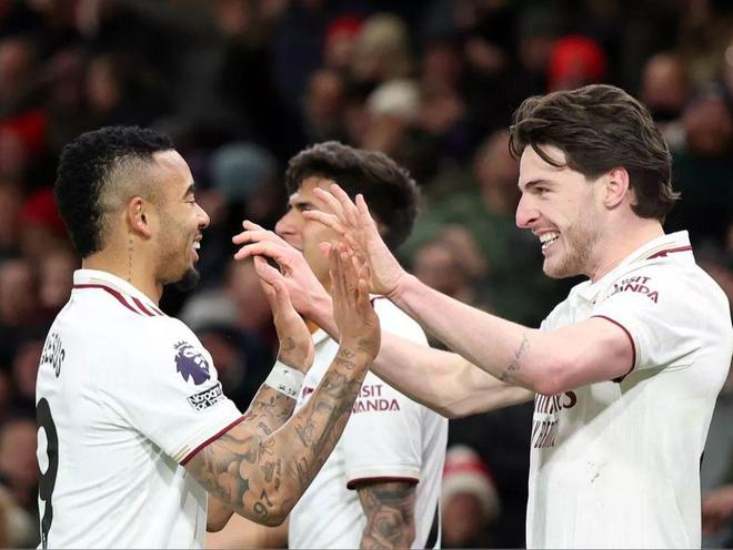 憑借個人英超首次梅開二度,賴斯的兩粒進球幫助槍手將領先爭冠對手曼城的優勢擴大到7分。
