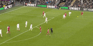 第11分鐘,瓊斯送出直塞,加克波插上在禁區(qū)左側(cè)單刀,打遠(yuǎn)角稍稍偏出。