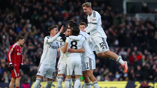 1分鐘后,利物浦的角球制造威脅,麥卡利斯特的頭球砸在橫梁上,富勒姆逃過一劫。