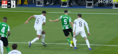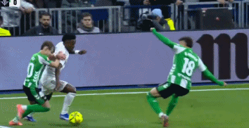 比賽的第5分鐘,維尼修斯突入禁區左肋,在兩名貝蒂斯球員的夾擊下倒地,主裁判并未判罰點球。隨后,視頻助理裁判介入判罰,最終確認奧爾蒂斯并未犯規。