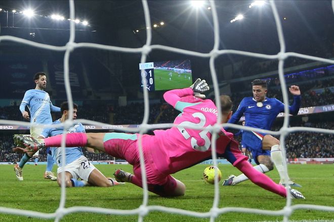 雖然賴因德斯的進球還是為曼城取得了領先,但意外卻接踵而來。下半場,迪亞茲和格瓦迪奧爾接連受傷下場,兩大主力中衛全部掛彩,曼城最終還是未能頂住切爾西最后時刻瘋狂反撲——多納魯馬竭盡全力也無法阻擋恩佐讀秒階段禁區內3連擊。