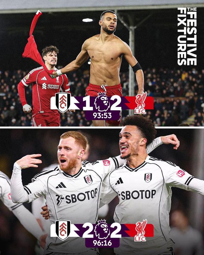 英超第20輪,富勒姆坐鎮主場迎戰利物浦,兩隊本場比賽上演進球大戰。