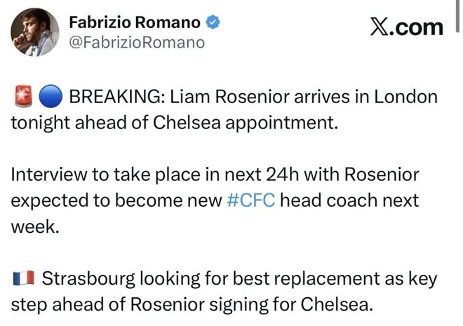 據TA,羅馬諾,以及多家英媒的最新報道,羅塞尼爾即將接任切爾西帥位,不過,他們會先等待斯特拉斯堡找到新帥才會官宣。