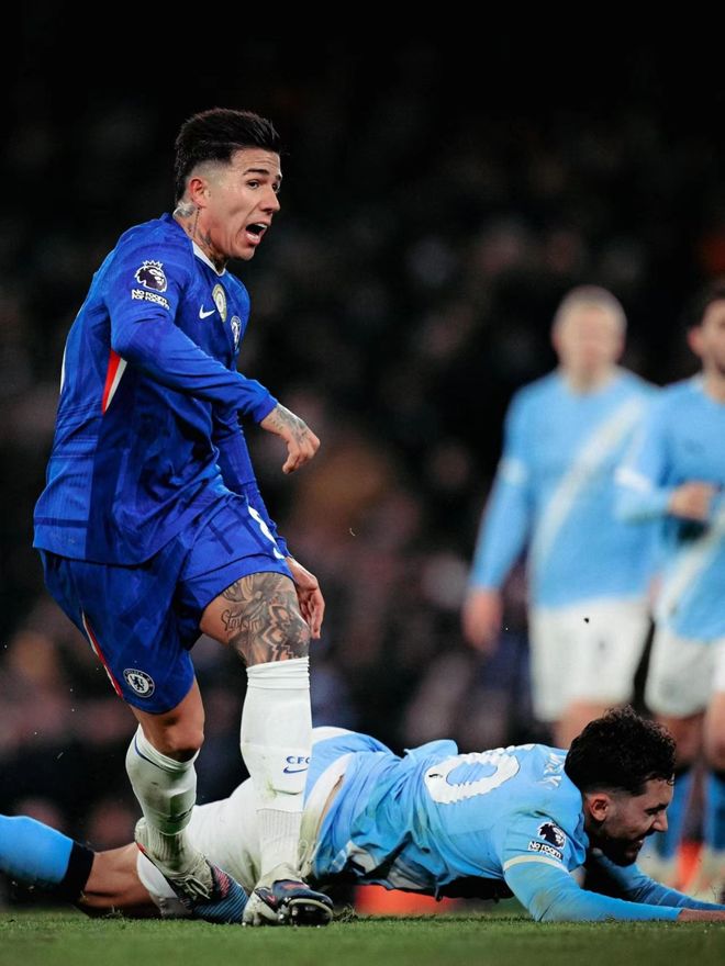 不過,除了最后時刻的進球,恩佐在本場比賽的意義顯然不只于此:只從數據層面來看,在進攻端,他招牌的傳球并沒有打出來,全場比賽的傳球成功率僅為76.2%,但他的激進能讓切爾西踢得更為積極主動,全場比賽他送出了兩次關鍵傳球,5次長傳2次成功,大量的向前傳球讓切爾西能時刻保持提速狀態。而在防守端,恩佐貢獻了3次解圍1次攔截和7次成功搶斷,無論是保衛自家禁區,還是身體力行壓迫曼城的中場,恩佐都打出了現象級的水準,那粒最后時刻的進球,更像是對切爾西中場一整場表現的延遲獎勵。