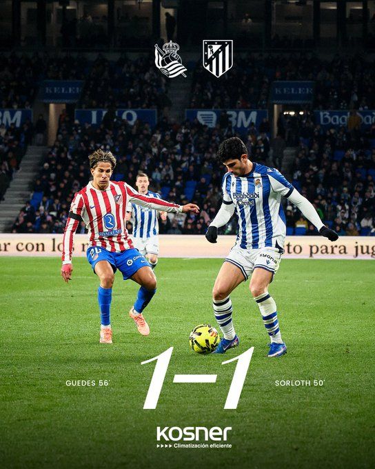 北京時間1月5日04:00,西甲聯賽第18輪,馬德里競技客場挑戰皇家社會。上半場瑟爾洛特烏龍越位無效,下半場瑟爾洛特先拔頭籌,小西蒙尼助攻;久保建英助攻格德斯扳平。最終馬競客場1-1戰平皇家社會,馬競各賽事4連勝終結,積38分仍居第4+距榜首巴薩11分,皇社聯賽5輪不勝。
