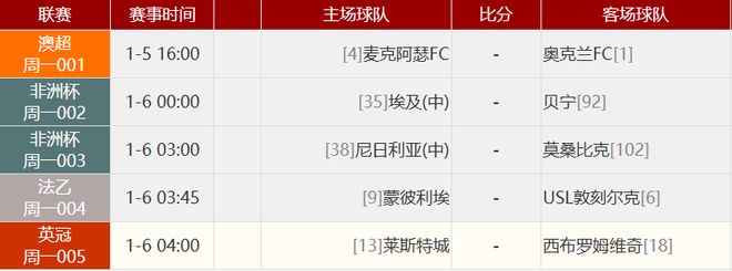 其他賽事比分: